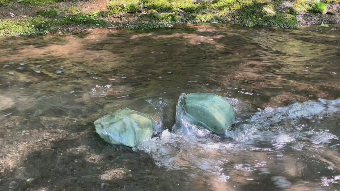 それともう一つ伝えたい私のこだわりが浄化についてです。ビーズの加工は業者さんにお願いしているんですけど、加工前の原石と、加工後のビーズは沙流川の水で浄化しています。