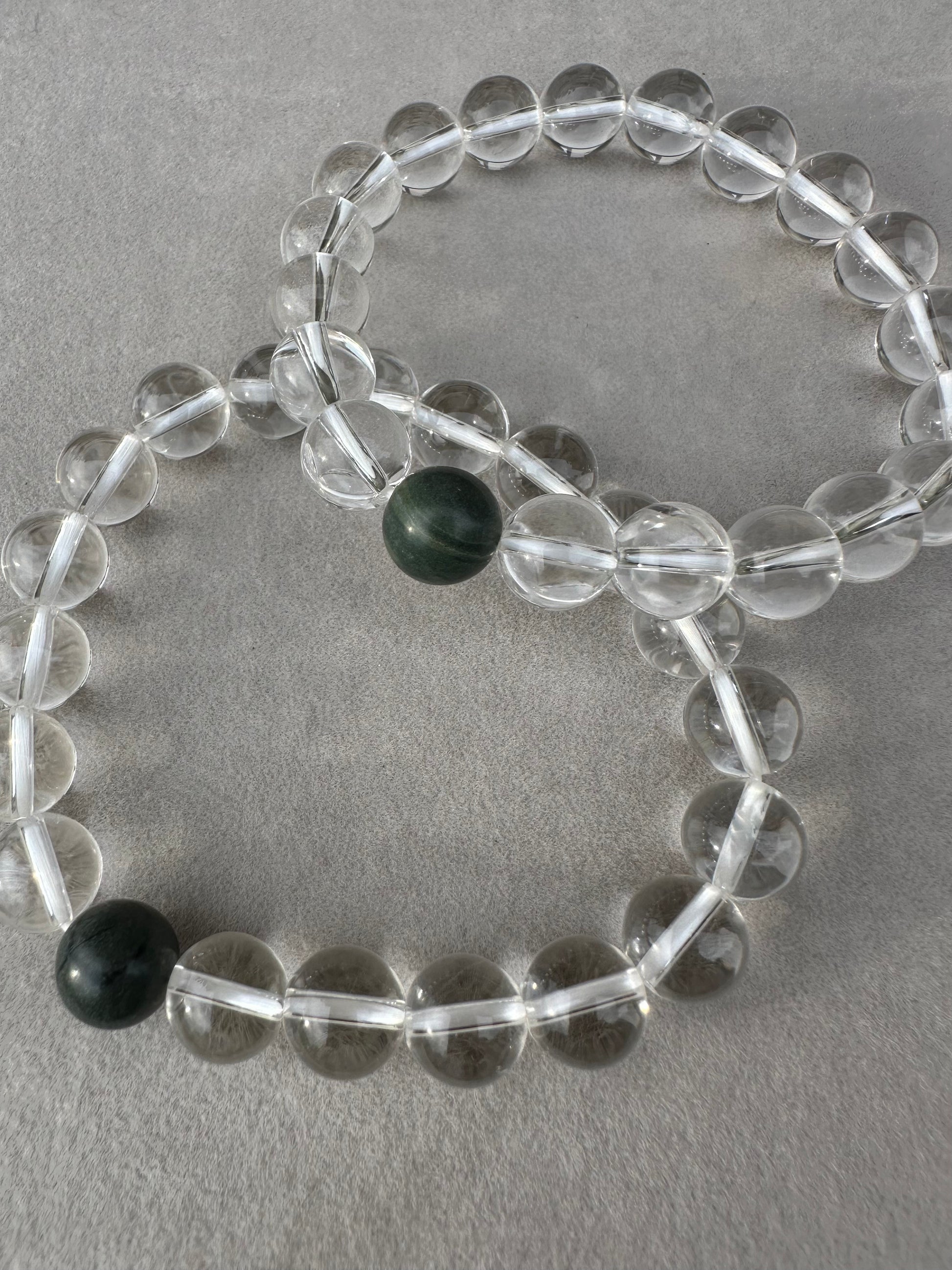 アオトラ10mmビーズ1粒、水晶19粒使ったブレスレットです。
